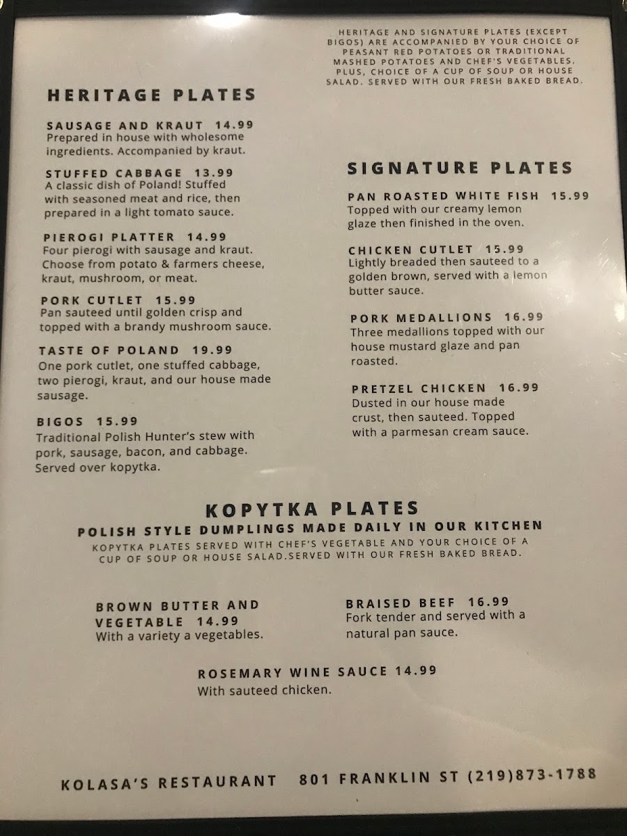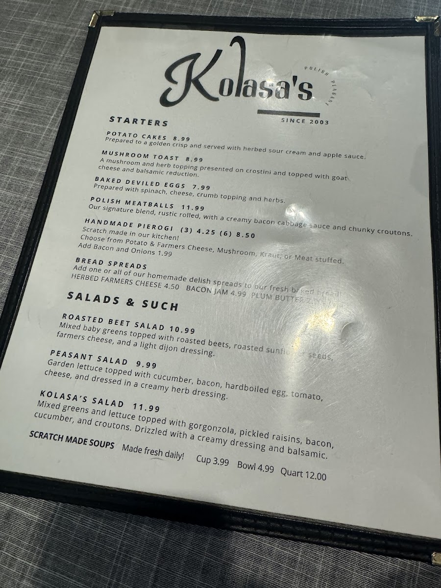 Welcome to Kolasa’s Restaurant (The Polish Peasant), a hidden gem located in Michigan City, Indiana, where the rich flavors of Polish cuisine come alive. Their menu is a delightful journey through traditional dishes that honor the heart and soul of Polish culinary heritage.